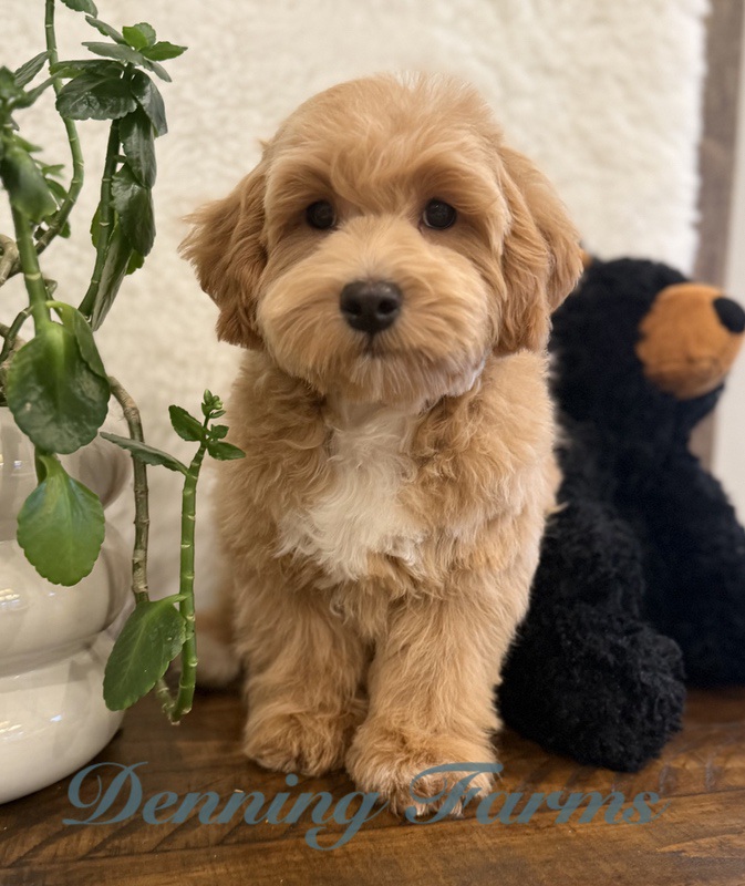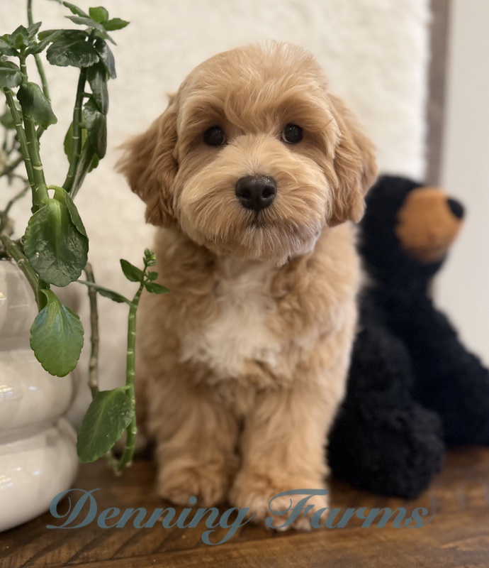 Our Cockapoo puppies are known for their loving, social personalities and gentle temperaments. Most Cockapoos will be 12–18 lbs full grown, making them the perfect size for families wanting a playful but not-too-big companion.