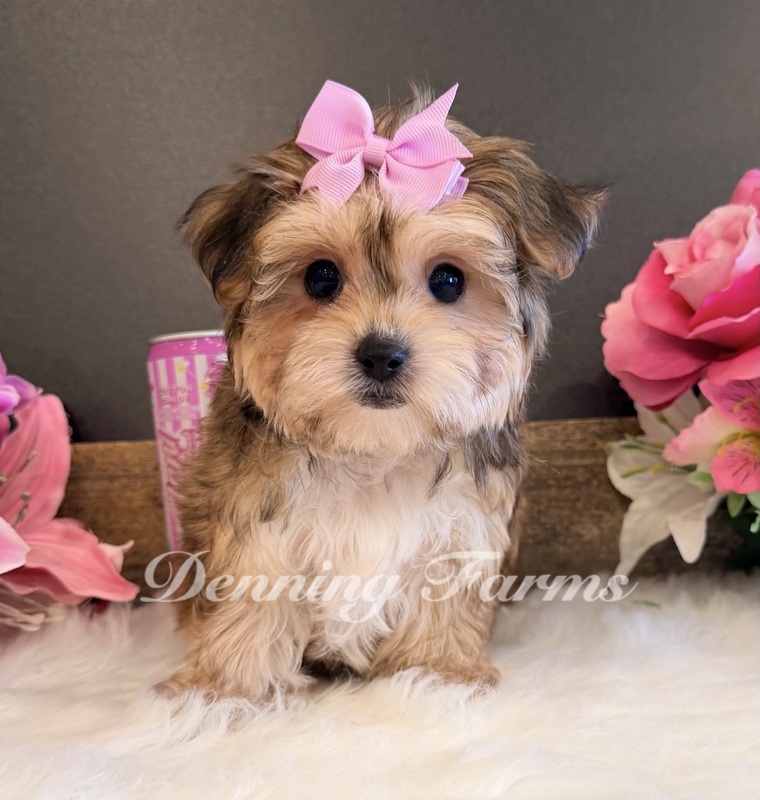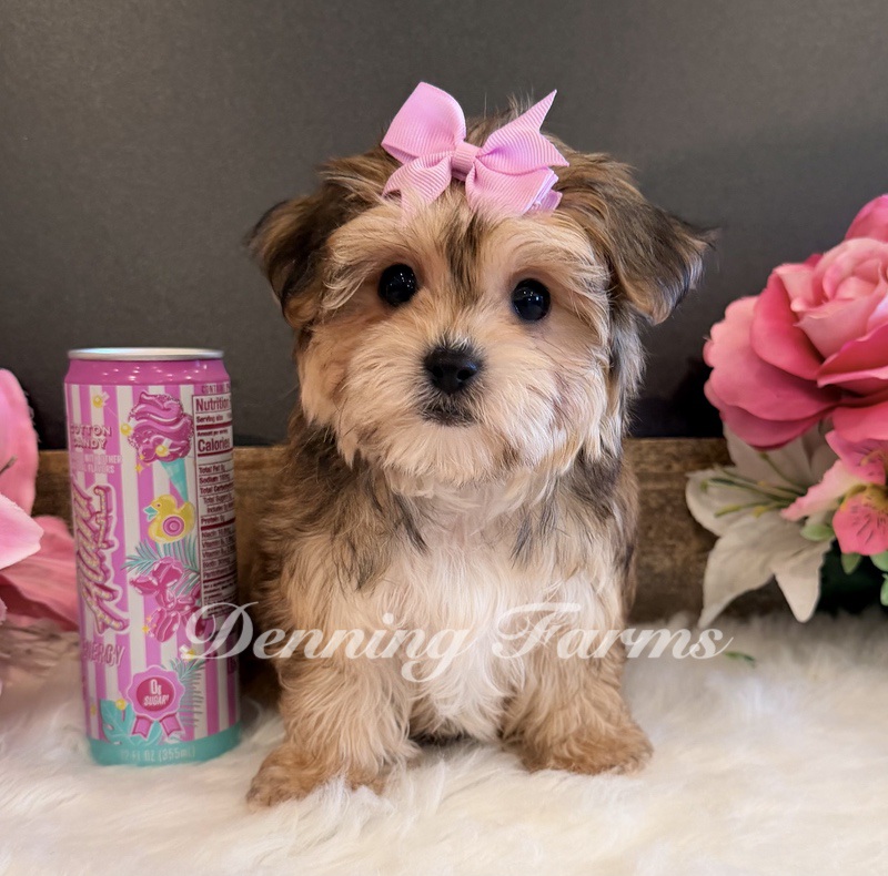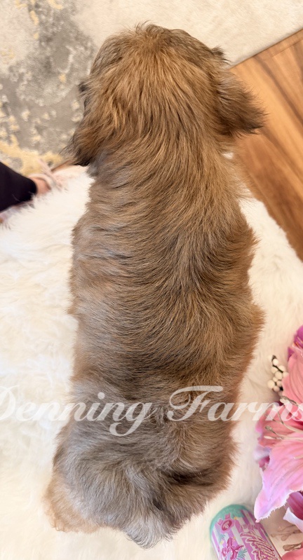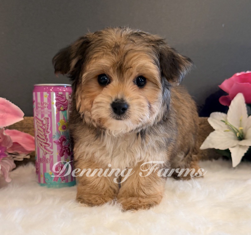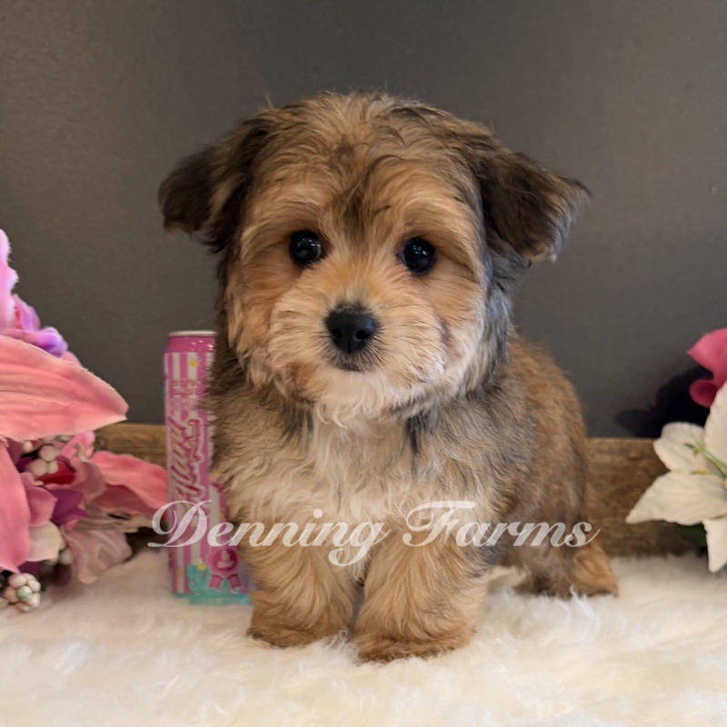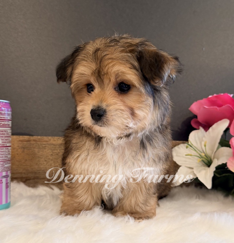 Radar my Tiny Yorkiepoo boy with the biggest ears and the sweetest expression. He’s expected to stay around 6 pounds and is 11 inches tall. Radar has a soft, fluffy coat with a little bit of curl.